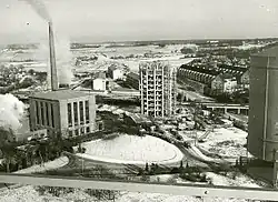 The Jægersborg area experienced rapid growth in the 1960s. The increase in population and relatively high location of the area caused periodically low water pressure. It was therefore decided to build a new water tower as a supplement to the water tower at Rævebakken in Vangede and built by the construction firm Rasmussen og Schiøttz. It was designed by the architect Edvard Thomsen. The building was topped out on 24 June 1954 and it was completed in 1955. The original plan was to build apartments on the lower floors but it was given up from fear that the water would cause noise pollution. An after-school activity centre opened in the ground floor in the 1980s. [1]