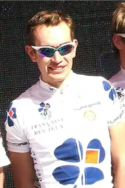 Jérémy Roy (born 22 June 1983) is a French former professional road bicycle racer, who competed as a professional between 2003 and 2018, spending his entire career with the Groupama–FDJ team through its various team guises.[1] He was named the most aggressive rider of the 2011 Tour de France after escaping into breakaways on many stages and continuously attacking from inside the breakaway.