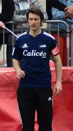 At the end of his playing career, Daret joined the staff of US Dax and pursued a coaching career, becoming director of the training center. He also held the position of head coach of the flagship team on several occasions. At the start of the 2007–2008 season, he joined the staff of the USD then promoted to the Top 14, to replace Marc Lièvremont, a former coach French rugby union team.[3] Daret was again called in as reinforcement during the 2012–2013 season, following the sidelining of Christophe Manas and Frédéric Garcia.[3] He was reappointed as the regular coach the following year, supported by the arrival of manager Richard Dourthe.[5] He stepped down in the 2014–2015 season, taking over the management of the training center full-time, while maintaining a role as an occasional contributor to the first team.[6] Despite his new official role as consultant, he remained very involved in practice with the professional team.[7] In March 2015, before the 22nd day of the championship, Richard Dourthe was thanked by the club authorities.[8] Following his departure, the club had to finish the season with a staff reduced to two elements, Brice Miguel in the forwards and Jérôme Daret for the back lines, who saw his workload increase even more despite his official position as internal consultant. For the 2015–2016 season, Daret was promoted to the position of sporting director by the future director Jean-Christophe Goussebaire before the end of the previous season.[9]