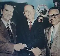 ![]() Signers of Punto Fijo Pact, from left to Right: Rafael Caldera, Jóvito Villalba and Rómulo Betancourt | |