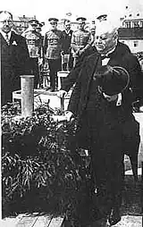 On 18 September 1938 Walter Harbich, as leader of "assembly of Silesian nationality", sent a telegram to Adolf Hitler, requesting independence of Cieszyn Silesia under a protection of Nazi Germany. Petition in the same question was sent to the prime minister of the UK Neville Chamberlain, too.[14] On 2 October 1938 Rudolf Francus and Walter Harbich - leaders of German-language faction of Silesian People's Party sent a next telegram to Hitler, speaking in protest of Silesian people and German people from Bohumín against cession of the Trans-Olza to Poland.[15] All the telegrams were sent without knowledge of Kożdoń.[16]