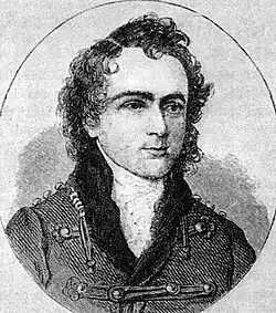 József Kármán (14 March 1769 in Losonc – 3 June 1795 in Losonc), sentimentalist Hungarian author, was born at Losonc (today Lučenec in Slovakia) in 1769, the son of a Calvinist pastor. He was educated at Losonc and Pest, whence he migrated to Vienna. There he made the acquaintance of the beautiful and eccentric Countess Markovics, who was for a time his mistress, but she was not, as has often been supposed, the heroine of his famous novel Fanni hagyományai ("Fanny's testament"). Subsequently, he settled in Pest as a lawyer.[1]
