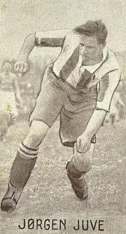 Jørgen Juve (22 November 1906 – 12 April 1983) was a Norwegian football player, jurist, journalist, and non-fiction writer. For most of his career, he played as a striker for Lyn. He also played for a season at Basel in Switzerland before retiring and earned a total of 45 caps for the Norway national team. He is the second highest-scoring player ever for Norway, with 33 goals in just 45 games, holding the record for most international goals in Norway from 1932 until 2024, when Erling Haaland surpassed his record. He was captain of the Norway team which won Olympic bronze medals in the 1936 Summer Olympics.[1] He also had a career as a journalist for Dagbladet and Tidens Tegn, and wrote several books.