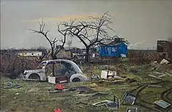 Although influenced at his beginnings by an expressionist manner like Lovis Corinth or Chaïm Soutine, his work turned quite quickly to an uncompromising realism. Willing to show the reality in the raw, he made himself the witness or the chronicler of the end times,[4] by documenting the condemned worlds by the evolution of society : the old beliefs, the social outcasts and the life in the fringe and the ravages from urbanization and industrialization. According to Le Monde art critic Philippe Dagen, Jürg Kreienbühl "could be seen as the first photorealist of the Parisian painting in the 1960s. He can also be seen as the predecessor of those who make their art a disillusioned social and architectural chronicle[5]".