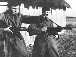![]() Partisans from "Jędrusie" unit during patrol – Andrzej Skowroński "Andrzej" and "Inspektor" | |