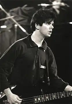 He moved with his parents to Godalming, Surrey, when he was 12 years old and attended the Royal Grammar School, Guildford, subsequently reading history at the University of Bradford and Huddersfield Polytechnic.[5] Burnel originally trained as a classical guitarist, but adopted the bass guitar as his instrument within the Stranglers.[6] He has provided lead vocals on nearly a third of the band's songs. Burnel later explained he often sang lyrics written by Hugh Cornwell (or vice versa) depending on "who had the best voice for that particular song".[7]