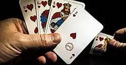 The playing cards were designed in 1902 by one of Öberg's employees lithographers, Cryssander, based on a German model. In 1905, the cards were changed slightly to give a uniform colour scheme on the court cards in each suit. An updated version of the cards was created in 1933 by the German artist Elisabet Linge, while retaining the character of the cards. Until 1960, the Ace of Hearts in each pack was stamped as proof that Swedish goods tax was paid. After that, the stamp disappeared, but Öberg continued to label his Ace of Hearts, albeit no longer with a separate stamp.[2]