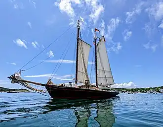 In the early 1970s she was bought by Dave and Sue Allen and converted from a fishing vessel to a passenger carrying vessel which is what she remains. Her engine was removed and cabins added below to create space for guests.[3] She is part of the Maine Windjammer fleet, carrying vacationers on 3-, 4- and 6-day sailing trips in Penobscot Bay, Maine. Her homeport is Rockland, Maine and her sailing grounds range from Boothbay Harbor, Maine to Bar Harbor, Maine. Much of her deck, underwater planking and frames are original.