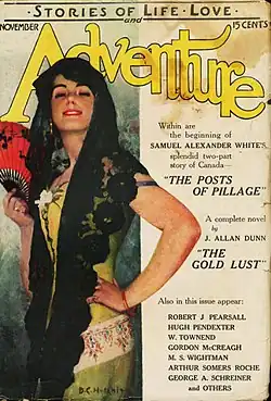 Joseph Allan Elphinstone Dunn (21 January 1872 – 25 March 1941), best known as J. Allan Dunn, was one of the high-producing writers of the American pulp magazines. He published well over a thousand stories, novels, and serials from 1914 to 1941. He first made a name for himself in Adventure.[1] At the request of Adventure editor Arthur Sullivant Hoffman, Dunn wrote Barehanded Castaways, a novel about people trapped on a desert island which was intended to avoid the usual cliches of such stories. Barehanded Castaways was serialised in 1921 and was well received by Adventure's readers.[2][3] Well over half of his output appeared in Street & Smith pulps, including People's, Complete Story Magazine, and Wild West Weekly. Dunn wrote over a thousand stories.[1] He wrote approximately 470 stories for Wild West Weekly alone. His main genres were adventure and western; although he did write a number of detective stories, most of them appearing in Detective Fiction Weekly and Dime Detective.[3] Dunn wrote The Treasure of Atlantis, a science fiction story about survivals from Atlantis living in the Brazilian jungle. The Treasure of Atlantis was published in All-Around Magazine in 1916 and later reprinted in 1970.[4] He was a specialist in South Sea stories, and pirate stories. He also published a lot of juvenile fiction; including many stories for Boys' Life, primarily in the 1920s. A number of his novel-length stories were reprinted in hardbound, some under the pen name "Joseph Montague" for Street & Smith's Chelsea House imprint; many of his books were issued in the United Kingdom. His stories were frequently syndicated in newspapers, both in America and around the world, making him, for a time, a very widely known author.