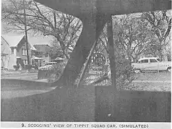 - ^ Warren Commission Hearings, vol. 19, p. 113, Barnes Exhibit A, Right side of Tippit squad car, showing open wing vent window. Mrs. Markham was on the opposite side of the street and a half block back.