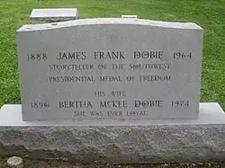 5. ^ a b c Francis E. Abernethy (June 12, 2010). "Dobie, James Frank". Handbook of Texas Online. Texas State Historical Association. Archived from the original on July 1, 2017. Retrieved July 2, 2017.