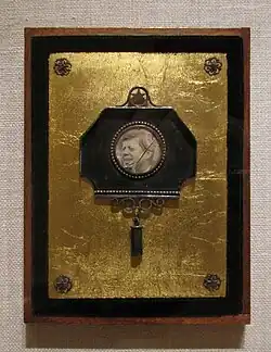 Upon his graduation from the University of Wisconsin-Madison, Woell taught for a short period of time. In 1967, he received a scholarship from Cranbook Academy of Art in Bloomfield Hills, Michigan to study sculpture and graduated in June 1969 with an MFA.[2] Woell would once again teach, this time for four years at the University of Wisconsin School system, while he also had his first solo exhibition at the Museum of Contemporary Crafts and the Lee Nordness Gallery in New York.[2] One of his more famous works that appeared at this exhibition was his piece titled, Come Alive, You're in the Pepsi Generation.[3] The piece is made from silver, brass, steel, glass, and found objects, and features a photo of a woman with an open mouth smile mounted on a half circle object with the colors of Pepsi Cola as well as 5 small Pepsi bottle caps attached to it with chain and bullet shells. The result of Woell's solo exhibition was his work featured on magazine covers, television, and many other types of media.[3] Woell describes this situation in his interview with Donna Gold, where he states, "...as a result of that show, a year later there was an article on me and my work in Craft Horizons magazine... now that did make quite an impact, and from then on I was asked to-it seemed like there was a whole series of magazine or books written on jewelry; they wanted a sample of something I did."[3]