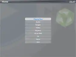 This is made to work on a large screen, such as a television, projector or large computer screen. The interface is made to work in a 10-foot mode, i.e. from a living room sofa using remote controls, rather than the conventional mouse and keyboard.