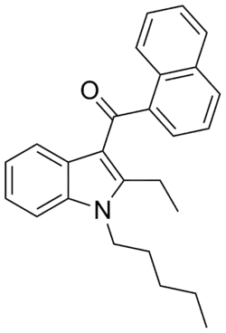 - ^ Huffman JW, Mabon R, Wu MJ, Lu J, Hart R, Hurst DP, et al. (February 2003). "3-Indolyl-1-naphthylmethanes: new cannabimimetic indoles provide evidence for aromatic stacking interactions with the CB(1) cannabinoid receptor". Bioorganic & Medicinal Chemistry. 11 (4): 539–49. doi:10.1016/s0968-0896(02)00451-0. PMID 12538019. S2CID 29107765.