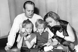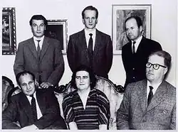 ![]() Syrjä (center in the back) with Harri Kaasalainen and Veikko Pihlajamaki, Soile Kaukovalta and Ilpo Kaukovalta in 1958 | |