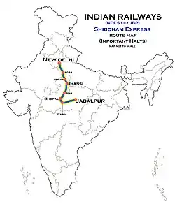 The 12191 / 12192 Jabalpur–New Delhi Superfast Express also known as Shridham Express (श्रीधाम एक्सप्रेस) is a daily Superfast e of Madhya Pradesh and Hazrat Nizamuddin railway station of Delhi, the capital city of India.