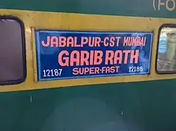 ![]() Jabalpur–Mumbai CSMT Garib Rath Express | |||||