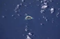 Jabat Island (or Jabot Island or Jabwot Island; Marshallese: Jebat, [tʲɛbˠɑtˠ][1]) is an island in the Pacific Ocean, and forms a legislative district of the Ralik Chain of the Marshall Islands. Its total land area is only 0.6 square kilometers (0.23 sq mi), and has a length of 1.2 kilometers (0.75 mi). It is located 12 kilometers (7.5 mi) from Ailinglapalap Atoll. Unlike most of the other islands in the Marshall Islands, Jabat Island is a rocky island rather than a coral atoll, although it surrounded by fringing shallow water coral reefs that extend for several kilometres beyond the outer reef to the north and south. The population of Jabat Island was 75 in 2021.[2]