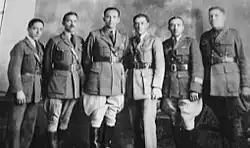 ![]() Aviation pioneers in Guatemala: Infantry Colonels Manuel Samayoa, Ricardo Rodas, Miguel García Granados Solís, Jacinto Rodríguez Diaz, Oscar Morales López and Perfecto Flores. | |