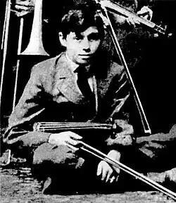 Benny was born Benjamin Kubelsky (Yiddish: בנימין קובעלסקי)[3] on February 14, 1894 in Chicago, and grew up in nearby Waukegan.[4]: 6 He was the son of Jewish immigrants Meyer Kubelsky and Naomi Emma (née Sachs). Meyer was a saloon owner and later a haberdasher who had emigrated to the United States from Poland and Emma (Yiddish: עמאַ קובעלסקי) had emigrated from Lithuania.[5][6][7][8][9] His parents gave him a half-size violin for his sixth birthday in 1900 and he started taking violin lessons from Professor Harlow in Waukegan, who charged 50 cents per lesson. Considered a prodigy, by the age of 8, Benny was making frequent trips to Chicago with his mother to study under Hugo Kortschak at the Chicago Musical College. He loved the instrument but hated to practice. Another one of his music teachers was Otto Graham Sr., a neighbor and father of football player Otto Graham. At 14, Benny was playing in dance bands and his high school orchestra. He was a dreamer and poor at his studies, ultimately dropped out of school and music lessons in the 9th grade. He later did poorly in business school and in attempts to join his father's business. In 1911, he began playing the violin in local vaudeville theaters for US$7.50 a week ($253.00 in 2024[10]).[4]: 11 He was joined on the circuit by Ned Miller, a young composer and singer.[11]