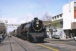 A mainline railroad runs through the middle of Embarcadero West, with the train speed limit set at 15 mph (25 km/h). Trains served 16th Street station until earthquake damage in 1989; afterwards, that station was replaced in 1994 by the present-day Jack London Square station. The tracks running through Jack London Square are used by BNSF and Union Pacific and Amtrak's Capitol Corridor, Coast Starlight and San Joaquin services. The trains share the road with automobiles, AC Transit buses, and pedestrians.[6] A second Transbay Tube may include a BART station at the square. Another possibility is an aerial tramway to BART stations in downtown Oakland.[7]