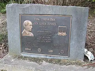 Lynch continued to be honoured by, among others, the Gaelic Athletic Association and various other organisations. In 1999, the Jack Lynch Tunnel under the river Lee was named by Cork Corporation in his honour. A plaque was also erected at his childhood home in the Blackpool area of Cork, where a statue of him on a bench was erected after his death.