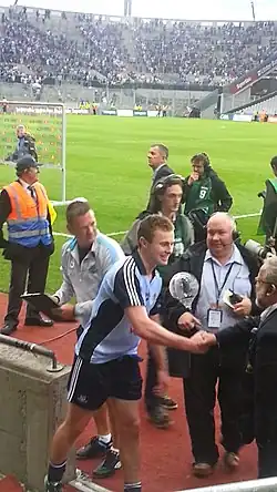 - ^ a b c "WATCH: Dublin's Jack McCaffrey steals the show again as unexpected water deluge interrupts Man of the Match presentation". Irish Independent. Independent News & Media. 2 September 2018. Retrieved 2 September 2018.