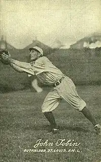 John Thomas Tobin (May 4, 1892 – December 10, 1969) was an American right fielder in Major League Baseball. He played in the Federal League (FL) for the St. Louis Terriers (1914–1915), and for the St. Louis Browns (1916, 1918–1925), Washington Senators (1926), and Boston Red Sox (1926–1927) of the American League (AL). He led the FL in hits in 1915, and he led the AL in triples in 1921.