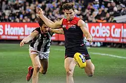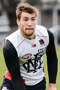 Following his strong 2016 season, AFL Media named him inside the top fifty players in the league[93] and Fox Sports Australia journalist, Anna Harrington, predicted he would continue his linear improvement and is "the gun player" of Melbourne.[94] Despite the positive expectation on him, he struggled for form early in the season and was criticised by former player and media personality, David King, for his performance in the thirteen point loss to Richmond at the Melbourne Cricket Ground in the Anzac Day eve match due to wasting energy with his aggression towards opposition players off the ball.[95] Soon after, he found form and was named in AFL Media's team of the week in rounds seven, eight and twelve.[96][97][98] He was praised in particular for his match against Collingwood in the Queen's Birthday clash, in which he recorded twenty disposals, ten contested possessions, three clearances and seven tackles to be named one of Melbourne's best players by Anna Harrington.[99]