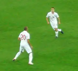 Wilshere was awarded man of the match in six out of seven UEFA Euro 2016 qualifying matches.[129][130] His first England goals came on his 28th appearance on 14 June 2015, in a UEFA Euro 2016 qualifying match away to Slovenia, netting two long-range strikes as they came from behind to win 3–2 at the Stožice Stadium in Ljubljana.[131]