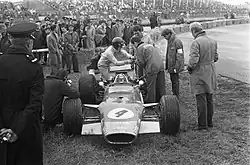 With Jochen Rindt signing for Lotus for 1969, Oliver switched to BRM. He was to suffer disappointing two years at the Bourne team, which would effectively kill off his Grand Prix career. In two years, he would muster just four finishes, with his only points scores being sixth place in the 1969 Mexican Grand Prix, and fifth in the 1970 Austrian Grand Prix. However, in 1970, he led much of the Race of Champions holding off Stewart and was a strong third for most of the Dutch and British GP. The poor result in the Austrian GP which Team boss, Louis Stanley thought he should have won, saw the best car go to Pedro Rodríguez from then on, but Oliver still led some laps at the slipstream Italian race. Stanley described Oliver, as 'good, but not nearly as good as he thought'.[1] The majority of his other races saw the BRM break down. Most pundits and sponsor, Yardley, were surprised and disappointed after Oliver was sacked by BRM. Jackie Stewart, judged Oliver a very good GP[2] and Can-Am driver.