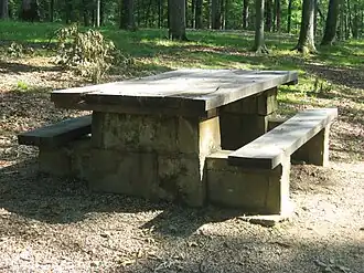 ![]() Stone picnic table in the CCC picnic grounds at Jackson-Washington State Forest, June 2011 | |