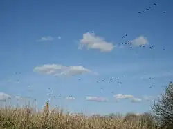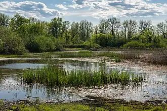 This area contains forest areas along the river bank, a forested wetland area, ponds, marshes, meadows, slough areas, and a forest section of mixed deciduous and conifer trees.[2] Jackson Bottom is home to a diverse group of plant and animal species. Animals that call the wetlands home include beavers, minks, nutria, ducks, blue and green herons, warblers, frogs, owls, red-tailed hawks, woodpeckers, opossums, deer, raccoons, newts, sparrows, finch, coyotes, and many other small rodents, birds, and reptiles. Migratory waterfowl include northern pintails, canvasbacks, blue-winged teal, green-winged teal, dusky Canada geese, and tundra swans.[2] Plant life there includes dogwood trees, Douglas fir, white oak, cocklebur, Columbia River sedge, red willow, Oregon ash, and other grass and tree species.[3]
