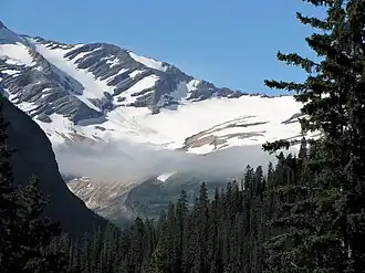 In 1850, there were an estimated 150 glaciers in the park. Glaciologists have stated that by the year 2030, many if not all of the glaciers in the park may disappear completely.[4] Jackson and Blackfoot glaciers have been selected for monitoring by the U.S. Geological Survey's Glacier Monitoring Research program, which is researching changes to the mass balance of glaciers in and surrounding Glacier National Park. The glacier is being monitored using remote sensing equipment and repeat photography, where images of the glacier are taken from identical locations periodically.[5] Jackson Glacier is one of the easiest of the park's glaciers to observe, and is located south of the Going-to-the-Sun Road on the east side of the Continental Divide, upper St. Mary Valley.