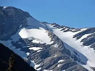 Jackson Glacier is approximately the seventh largest of the remaining 25 glaciers in Glacier National Park located in the US state of Montana.[2] A part of the largest grouping of glaciers in the park, Jackson Glacier rests on the north side of Mount Jackson.[3] The glacier was most recently measured in 2005 at 250 acres (1.0 km2), yet when first documented in 1850, the glacier also included the now separate Blackfoot Glacier and together, they covered 1,875 acres (7.59 km2). Between 1966 and 2005, Jackson Glacier lost almost a third of its acreage.[2] When the two glaciers were united prior to their separation sometime before 1929, they were known simply as Blackfoot Glacier.