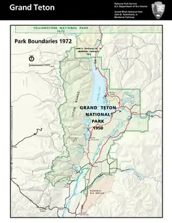 - ^ a b An Act, To establish a new Grand Teton National Park in the State of Wyoming and for other purposes, public law 787, chapter 950, https://www.loc.gov/law/help/statutes-at-large/81st-congress/session-2/c81s2ch950.pdf
