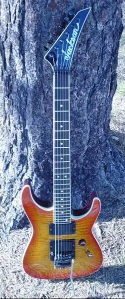 The Jackson Soloist is an electric guitar model introduced by Jackson Guitars in 1984, although prototypes were available before then. The design is a typical "superstrat"; it varies from a typical Stratocaster because of its neck-thru design; tremolo: Floyd Rose or similar, Kahler; or a fixed Tune-O-Matic; premium woods; a deeper cutaway at the lower horn for better access to the higher frets, and a sharper body with squared-off edges.