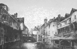 ... crazy wooden galleries common to the backs of half a dozen houses, with holes from which to look upon the slime beneath; windows, broken and patched, with poles thrust out, on which to dry the linen that is never there; rooms so small, so filthy, so confined, that the air would seem to be too tainted even for the dirt and squalor which they shelter; wooden chambers thrusting themselves out above the mud and threatening to fall into it – as some have done; dirt-besmeared walls and decaying foundations, every repulsive lineament of poverty, every loathsome indication of filth, rot, and garbage: all these ornament the banks of Folly Ditch.