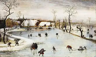 - ^ Jacob Grimmer (circa 1525 – after 1592) and Gillis Mostaert (1528–1598), Mountainous landscape with peasants working on the land and travellers with a carriage and Winter landscape with travellers and people on a frozen river at Sotheby's