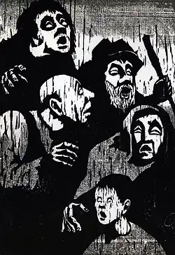- Master woodcuts by Jacob Pins. Oblong octavo, staples paper covers, 12pp., b/w illustrations. Introduction by Ruth Eis. A short catalog of the exhibition, May 5 – June 30, 1974, Judah L. Magnes Museum, Berkeley, California, 1974