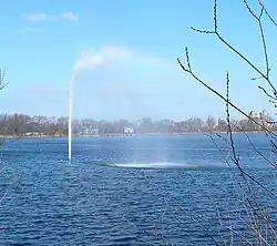 The reservoir covers 106 acres (43 ha) and holds over 1,000,000,000 US gallons (3,800,000 m3) of water.[21] Though no longer a part of New York City's water supply system, it does supply water to the nearby Pool and Harlem Meer.
