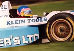 Four months later, Villeneuve accepted an invite to share a TOM'S-entered Toyota TS010 car with Eddie Irvine and Tom Kristensen at the final round of the 1992 All Japan Sports Prototype Car Endurance Championship at Mine Circuit, finishing fourth. He was fourth at the Macau Grand Prix for TOM'S.[18] In Trois-Rivières, Villeneuve met crew chief Barry Green who wanted a driver for his new Forsythe-Green Racing squad.[11] He accepted a three-year contract from Green with personal sponsorship from sports marketing arm Player's November 1992.[8][21][17] He raced the lower-tier 1993 Atlantic Championship which featured more powerful cars with more grip and downforce to become better acquainted with American open-wheel racing before progressing to Championship Auto Racing Teams (CART) in 1994.[18][22] Villeneuve built a close working relationship with aerodynamicist Tony Cicale.[25] Driving the No. 10 Ralt RT40-Toyota car, Villeneuve won five races and finished in the top three four times for third overall and 185 points after a season-long duel with David Empringham and teammate Claude Bourbonnais.[20][24][25] He was named the series' Rookie of the Year,[1] and ended 1993 retiring from the Macau Grand Prix driving a March Racing Ralt 93C-Fiat car.[25]