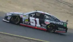 Villeneuve explored NASCAR after exiting F1, talking to Roush Racing owner Jack Roush who agreed to help Villeneuve obtain Truck Series experience before progressing to the Busch Series in 2007 on the condition of a sponsorship agreement.[77] Before that, he made his 24 Hours of Le Mans debut with Peugeot in the 2007 edition informing team manager Serge Saulnier that he wanted to complete the Triple Crown of Motorsport.[k][78] Sharing the Le Mans Prototype 1 (LMP1)-class No. 7 Peugeot 908 HDi FAP car with Marc Gené and Nicolas Minassian, Villeneuve retired after 338 laps with engine injection trouble.[79][80] He entered into a partnership with Bill Davis Racing (BDR) to enter the 2007 NASCAR Craftsman Truck Series' last seven events in its No. 27 Toyota Tundra in anticipation of racing full-time in 2008.[81][82] Villeneuve finished outside the top ten in all seven events for 42nd overall with 615 points.[83] That same year, he drove two races in the Nextel Cup Series (the UAW-Ford 500 at Talladega Superspeedway and the Checker Auto Parts 500 at Phoenix) in BDR's No. 27 Toyota,[l] finishing 21st and 41st respectively.[85]