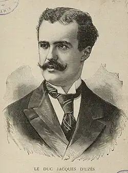 His father, who had been elected to the legislature in 1871, died in 1878 and 10 year-old Jacques became the 13th Duke of Uzès and the head of the House of Crussol.[6]