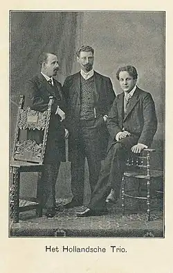 Van Lier was a cellist at the Berlin Philharmonic between 1896 and 1898. He left the orchestra to dedicate himself to teaching, arranging compositions for cello and playing chamber music. He took a position as teacher at the Klindworth-Scharwenka-conservatorium where he stayed until 1914.[8] In 1899, van Lier joined Coenraad Valentijn Bos and Joseph van Veen to start a pianotrio named "The Dutch Trio" which became famous throughout Europe and was active until 1910.[9]