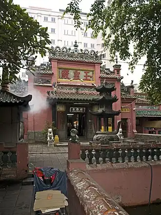 The Jade Emperor Pagoda (Vietnamese: Chùa Ngọc Hoàng; name: Ngọc Hoàng Điện, 玉皇殿, "Jade Emperor Hall", French: Temple Da Kao) also known as the Phước Hải Tự (Vietnamese: Chùa Phước Hải; 福海寺, "Luck Sea Temple") is a Taoist, Buddhist, Confucian pagoda located at District 1, Ho Chi Minh City, Vietnam. It was founded by a Chinese merchant named Liu Daoyuan (劉道源, Lưu Minh or Lưu Đạo Nguyên), a Cantonese migrant. It is also known from 1984 by the new Buddhist name Phước Hải Tự (福海寺, "Luck Sea Temple").[1][2] Then U.S. President Barack Obama paid a visit to the pagoda during his state trip to Vietnam on 22 May 2016.[3]