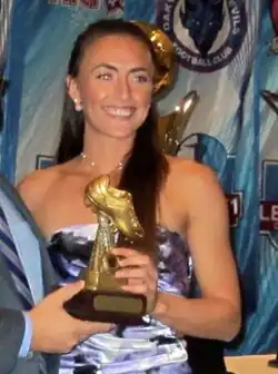 Later in 2017, she returned to FC London, where she scored 40 goals in 20 league matches,[59] as London won the league championship again, also winning the league cup title;[60] while earning league MVP, First Team All-Star, and Golden Boot honours for the second consecutive season.[61][62][63] In 2018, she scored 18 league goals in 10 league matches, leading the league in scoring again, despite missing a month-and-a-half due to injury.[64] For the third consecutive year, she was named league MVP, a First Team All-Star, in addition to winning the Golden Boot.[65][66][67]