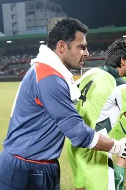 After playing at the 2004 Summer Olympics qualifiers, he took the under-23 side all the way to the final of the 2004 South Asian Games against India, where his string of saves gave Pakistan a 1–0 victory.[5][10] After playing in the 2005 Islamic Solidarity Games, he retained his captaincy for a three-match friendly series against India in 2005, later playing in the 2005 SAFF Gold Cup and the 2007 AFC Asian Cup qualification the same year.[8] He also captained the national side at the 2006 AFC Challenge Cup.