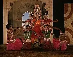 Herzog's narration explains that the event was requested of the Maharana by a local wise man who saw the sinking of the city's palaces into the Pichola Lake as a sign that the local culture was deteriorating, and that the Maharana needed to stage the performance to reinvigorate interest in the various cultures represented. This story was invented by Herzog for the film, to "put it all into some context."[1]