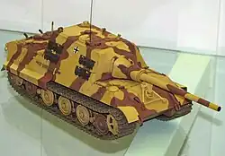 The Jagdtiger ("Hunting Tiger"; officially designated Panzerjäger Tiger Ausf. B) is a German casemate-type heavy tank destroyer (Jagdpanzer) of World War II. It was built upon the slightly lengthened chassis of a Tiger II. Its ordnance inventory designation was Sd.Kfz. 186.